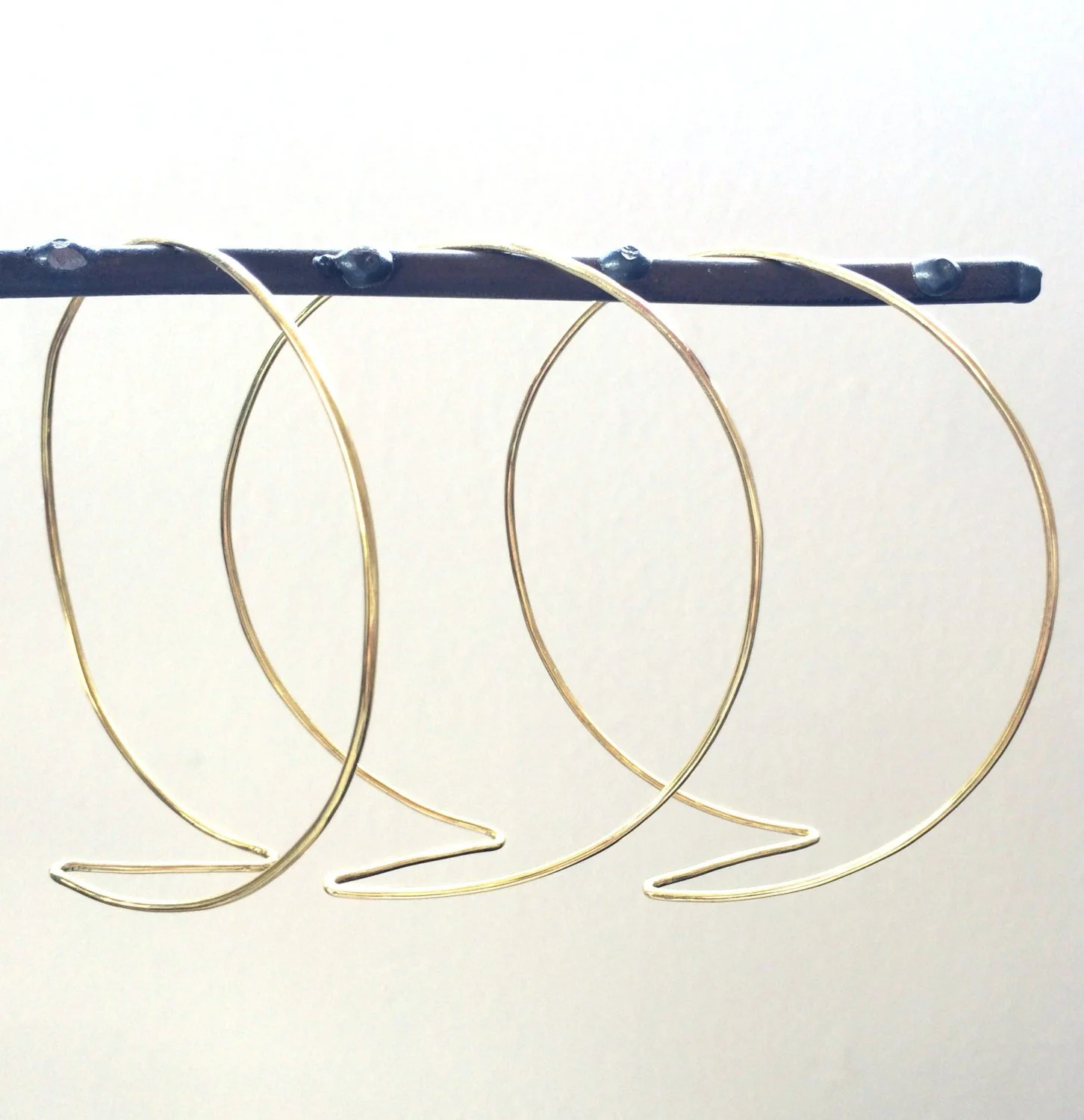 Lightweight, thin, brass bangle bracelets hand formed and hammered to resemble lightning bolts. This listing is for 3 bracelets and they come in the following sizes/diameters